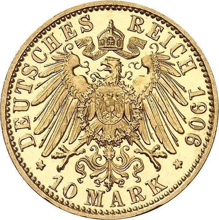 Sprawdź wartość monety niemieckiej 10 marek 1906 "Prusy" ze znakiem A. Jest to złota moneta z okresu Cesarstwa Niemieckiego wybita w mennicy Berlin. Chcesz wiedzieć, ile jest warta moneta? Rekordowa cena należy do pozycji 4001 z aukcji Fritz Rudolf Künker GmbH & Co. KG której łączna cena osiągnęła 3400 EUR. Licytacja odbyła się 23 czerwca 2016.