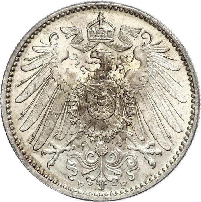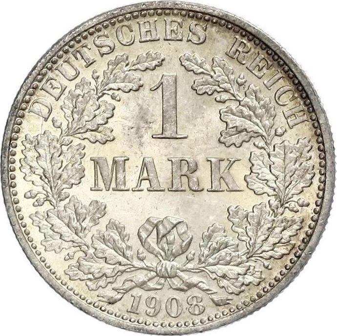 Według najnowszych danych na dzień 6 grudnia 2025, średnia cena srebrnej monety 1 marka 1908 Cesarstwa Niemieckiego ze znakiem F wynosi 120 USD dla emisji obiegowej oraz 320 USD dla monet wybitych sztemplem lustrzanym.