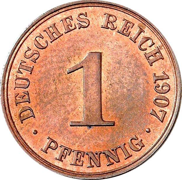 Według najnowszych danych na dzień 6 grudnia 2025, średnia cena monety 1 fenig 1907 Cesarstwa Niemieckiego ze znakiem A wynosi 25 USD dla emisji obiegowej oraz 170 USD dla monet wybitych sztemplem lustrzanym. Moneta została wykonana z nieszlachetnego metalu, dlatego w słabym stanie zachowania może mieć bardzo niską wartość i płynność.