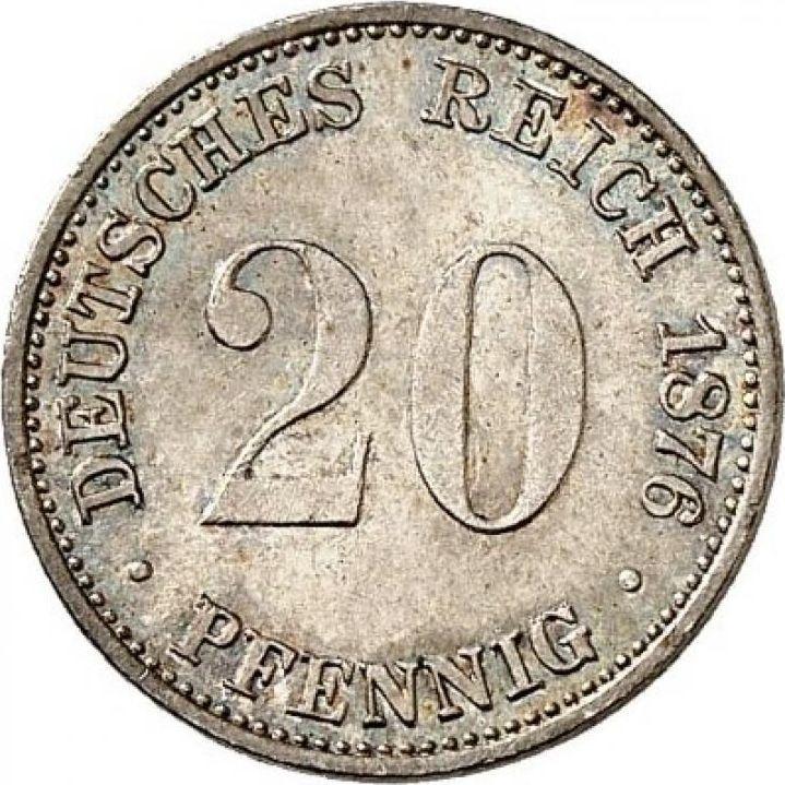 Sprawdź wartość monety niemieckiej 20 fenigów 1876 ze znakiem C. Jest to srebrna moneta z okresu Cesarstwa Niemieckiego wybita w mennicy Frankfurt nad Menem. Chcesz wiedzieć, ile jest warta moneta? Rekordowa cena należy do pozycji 1423 z aukcji Ira & Larry Goldberg Coins & Collectibles, Inc. której łączna cena osiągnęła 161 USD. Licytacja odbyła się 29 października 2009.