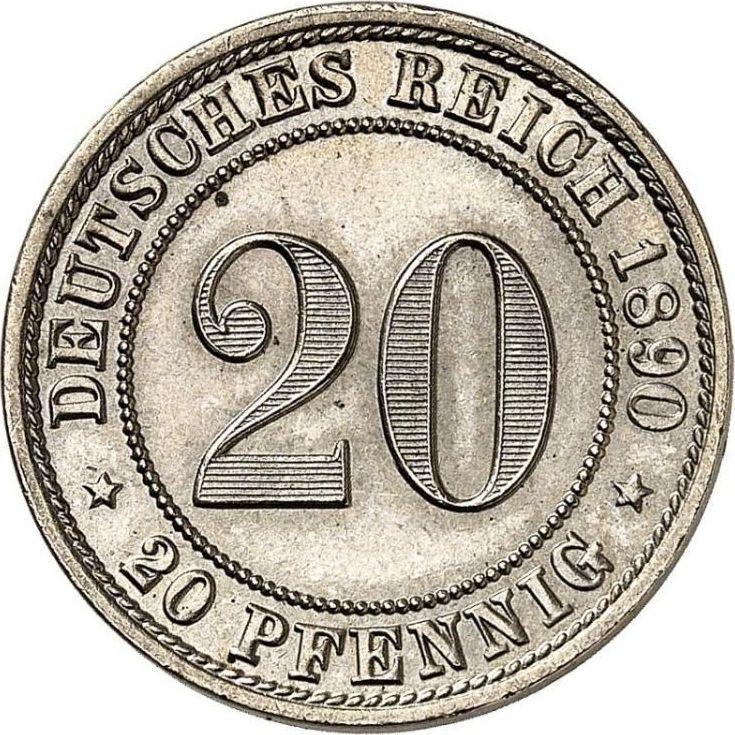 Według najnowszych danych na dzień 6 grudnia 2025, średnia cena monety 20 fenigów 1890 Cesarstwa Niemieckiego ze znakiem D wynosi 220 USD. Moneta została wykonana z nieszlachetnego metalu, dlatego w słabym stanie zachowania może mieć bardzo niską wartość i płynność.