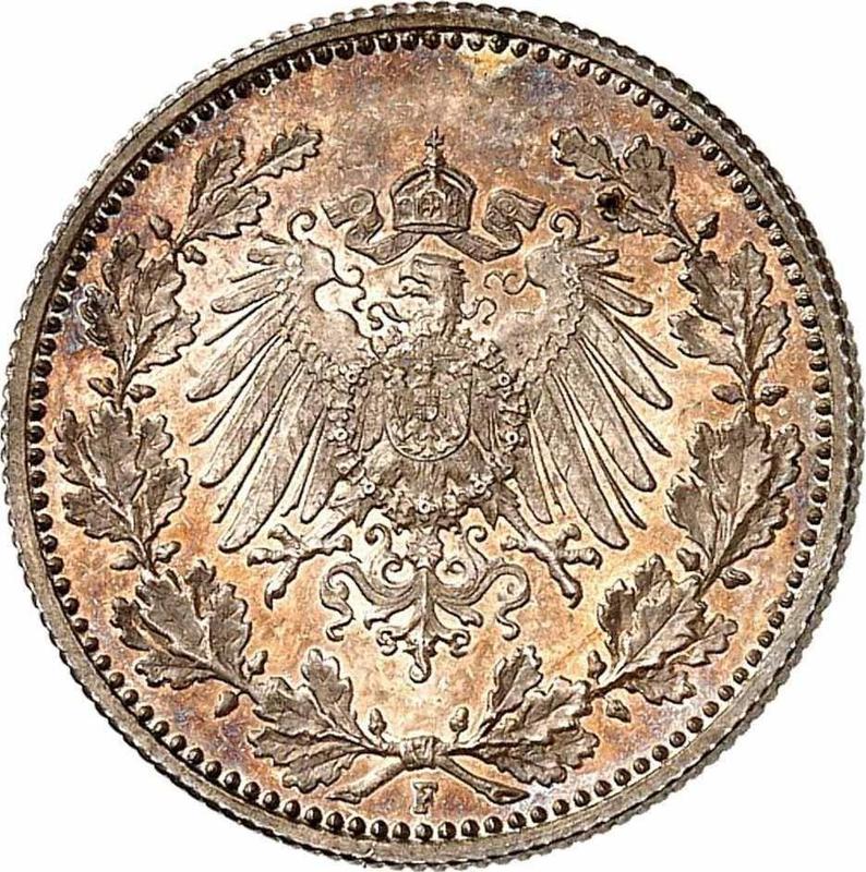 Według najnowszych danych na dzień 6 grudnia 2025, średnia cena srebrnej monety 50 fenigów 1902 Cesarstwa Niemieckiego ze znakiem F wynosi 520 USD dla emisji obiegowej oraz 1000 USD dla monet wybitych sztemplem lustrzanym.