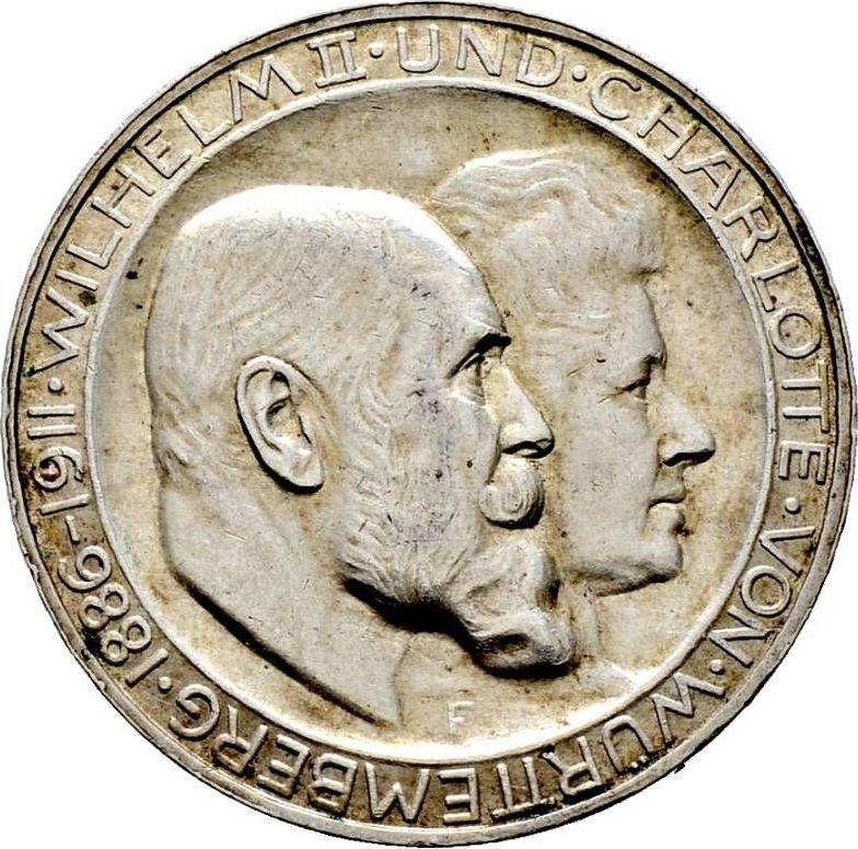3 marki 1911 F "Wirtembergia". Srebrny ślub. "H" - wysoka (Niemcy, Cesarstwo Niemieckie)