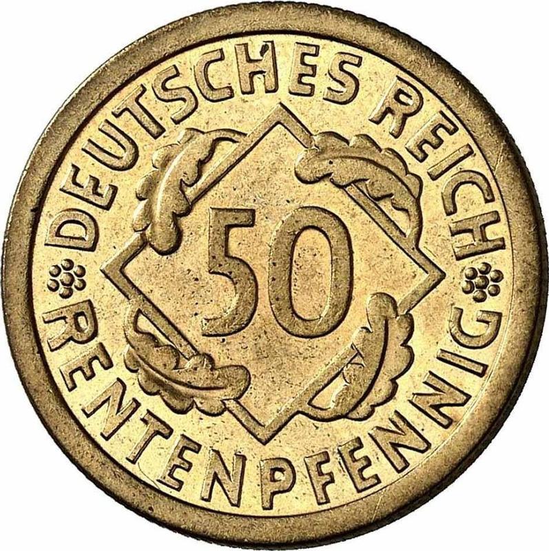 Według najnowszych danych na dzień 6 grudnia 2025, średnia cena monety 50 rentenpfennig 1923 Republiki Weimarskiej ze znakiem J wynosi 1100 USD dla emisji obiegowej oraz 4000 USD dla monet wybitych sztemplem lustrzanym. Moneta została wykonana z nieszlachetnego metalu, dlatego w słabym stanie zachowania może mieć bardzo niską wartość i płynność.