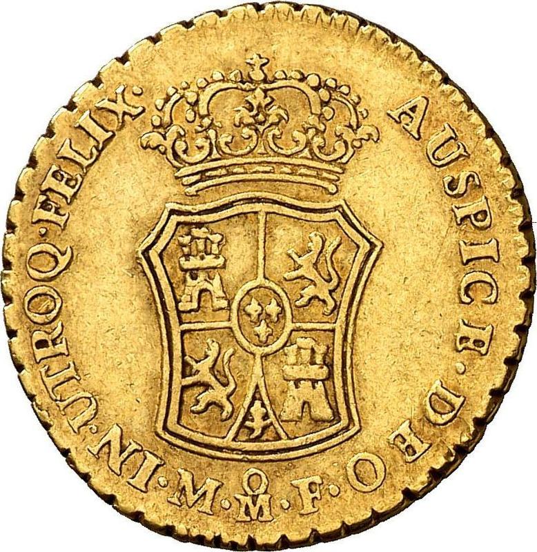 Ile kosztuje złota moneta 2 escudo 1763 Mo MF z okresu Karola III?