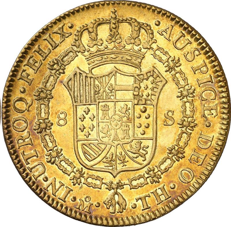 Ile kosztuje złota moneta 8 escudo 1806 Mo TH z okresu Karola IV?