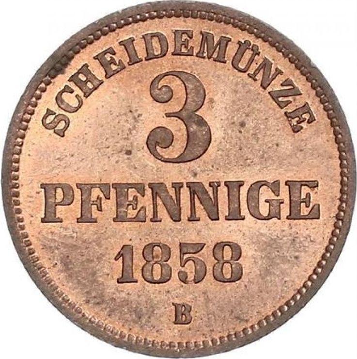 Według najnowszych danych na dzień 5 grudnia 2025, średnia cena monety 3 fenigi 1858 Nikolausa Fryderyka Piotra ze znakiem B wynosi 170 USD. Moneta została wykonana z nieszlachetnego metalu, dlatego w słabym stanie zachowania może mieć bardzo niską wartość i płynność.