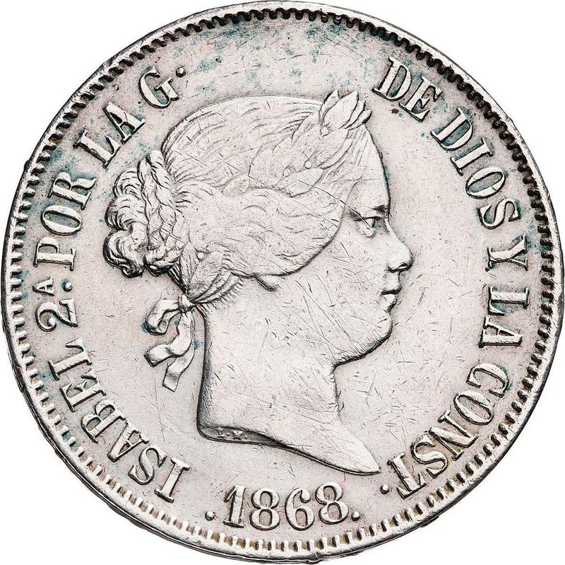 Ile kosztuje srebrna moneta 50 centavos 1868 z okresu Izabela II?