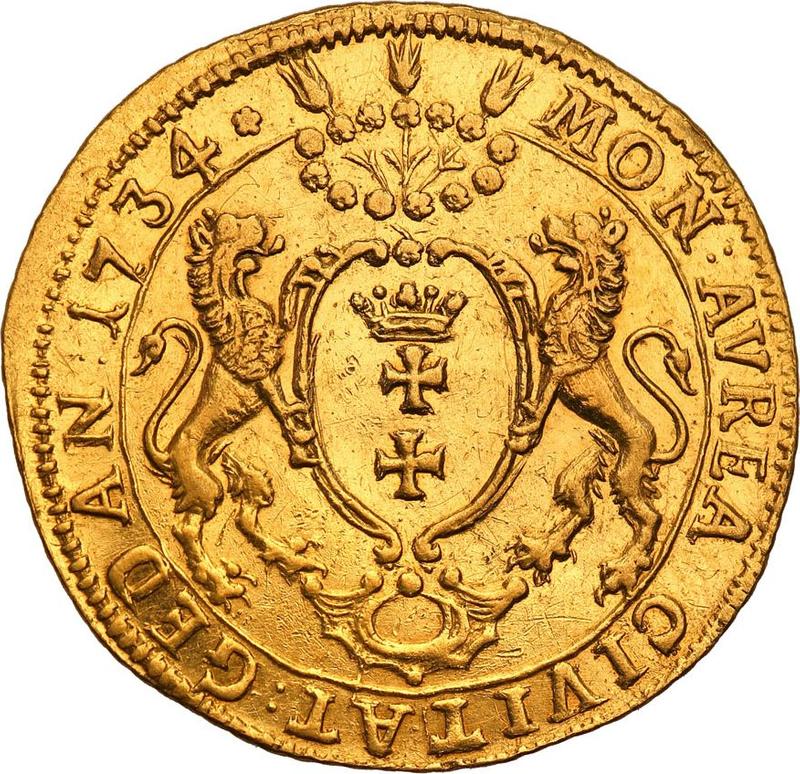 Sprawdź wartość monety polskiej Dukat 1734 "Gdański". Jest to złota moneta z okresu Augusta III wybita w mennicy gdańskiej. Chcesz wiedzieć, ile jest warta moneta? Rekordowa cena należy do pozycji 2916 z aukcji Fritz Rudolf Künker GmbH & Co. KG której łączna cena osiągnęła 26 000 EUR. Licytacja odbyła się 26 czerwca 2019.