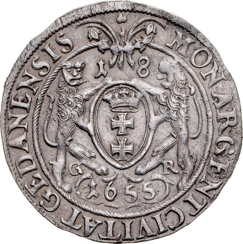 Ort (18 groszy) 1655 GR "Gdańsk" (Polska, Jan II Kazimierz)