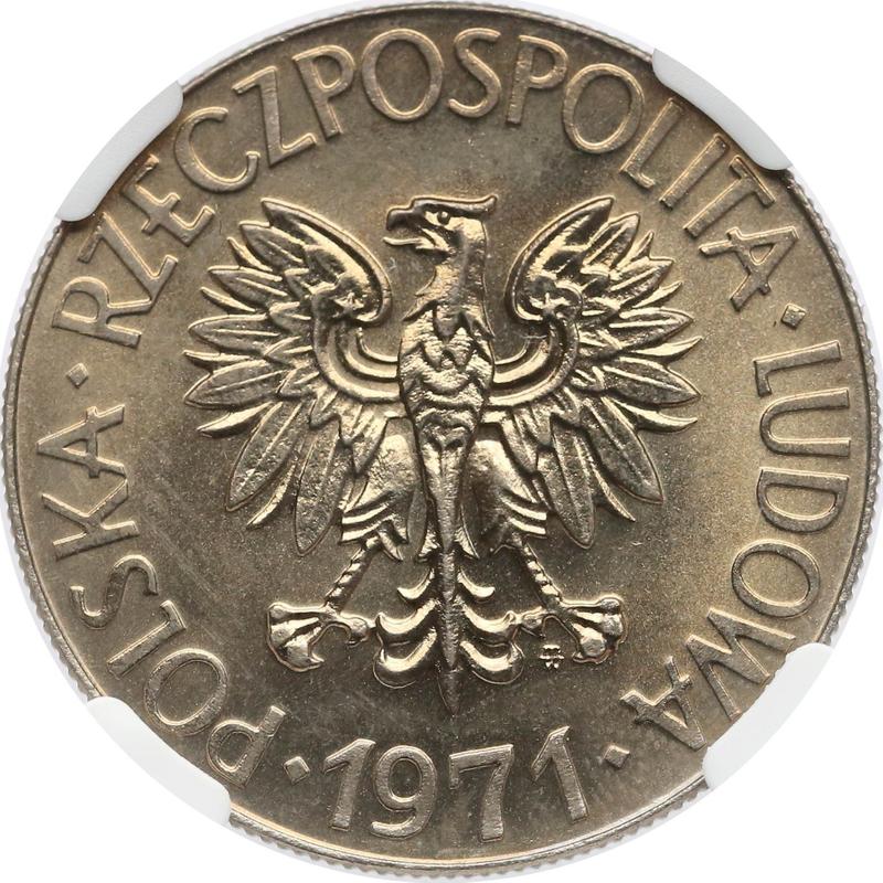 Sprawdź wartość monety polskiej 10 złotych 1971 "200 Rocznica śmierci Tadeusza Kościuszki" ze znakiem MW. Jest to miedziano-niklowa moneta z okresu PRL wybita w mennicy warszawskiej. Chcesz wiedzieć, ile jest warta moneta? Rekordowa cena należy do pozycji 3146 z aukcji MARCINIAK | DOM AUKCYJNY której łączna cena osiągnęła 1000 PLN. Licytacja odbyła się 27 maja 2025.