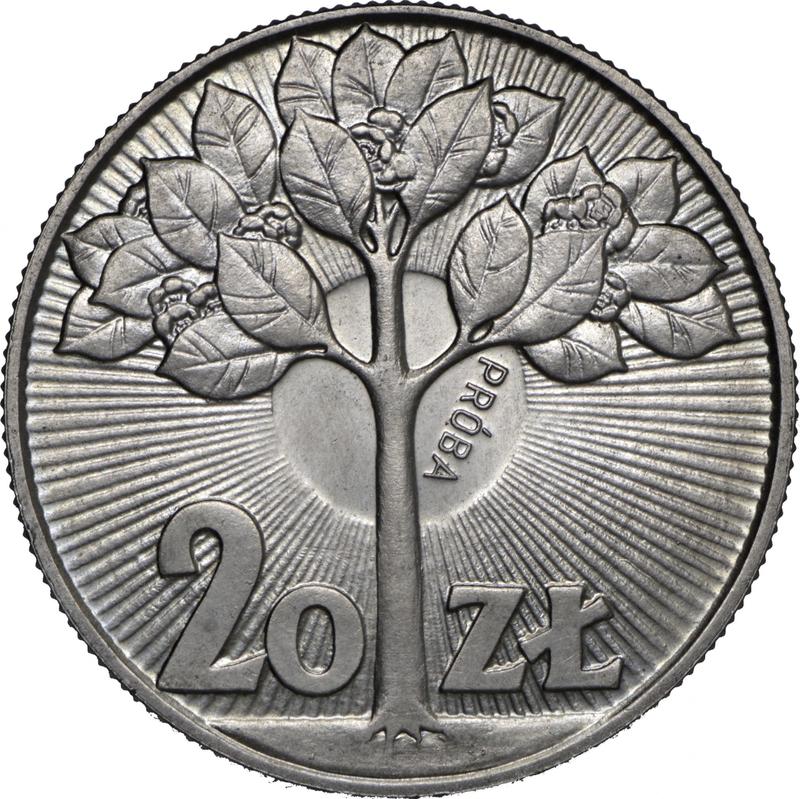 Próba 20 złotych 1973 MW "Drzewo". Miedź-nikiel (Polska, PRL)