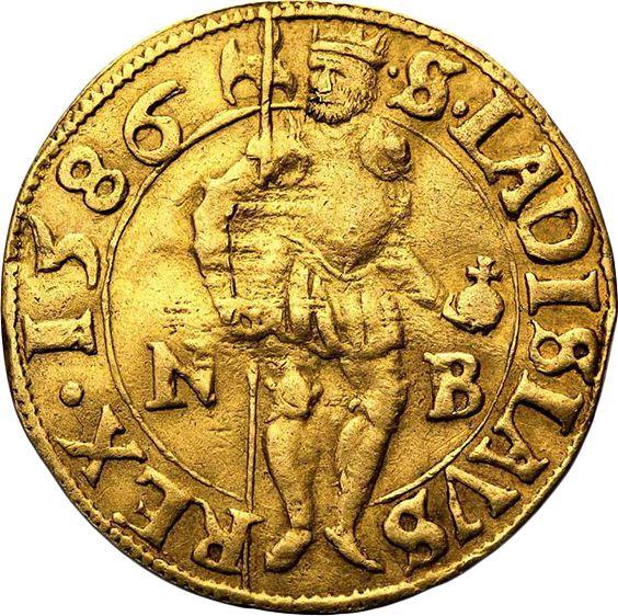 Sprawdź wartość monety polskiej Dukat 1586 "Nagybanya" ze znakiem NB. Jest to złota moneta z okresu Stefana Batorego. Chcesz wiedzieć, ile jest warta moneta? Rekordowa cena należy do pozycji 379 z aukcji Warszawskie Centrum Numizmatyczne której łączna cena osiągnęła 44 000 PLN. Licytacja odbyła się 7 listopada 2015.