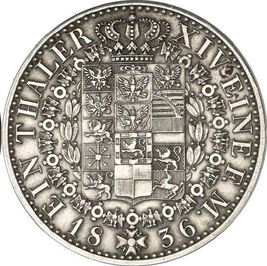 Sprawdź wartość monety pruskiej Talar 1836 ze znakiem A. Jest to srebrna moneta z okresu Fryderyka Wilhelma III wybita w mennicy Berlin. Chcesz wiedzieć, ile jest warta moneta? Rekordowa cena należy do pozycji 3902 z aukcji Fritz Rudolf Künker GmbH & Co. KG której łączna cena osiągnęła 1400 EUR. Licytacja odbyła się 24 czerwca 2009.