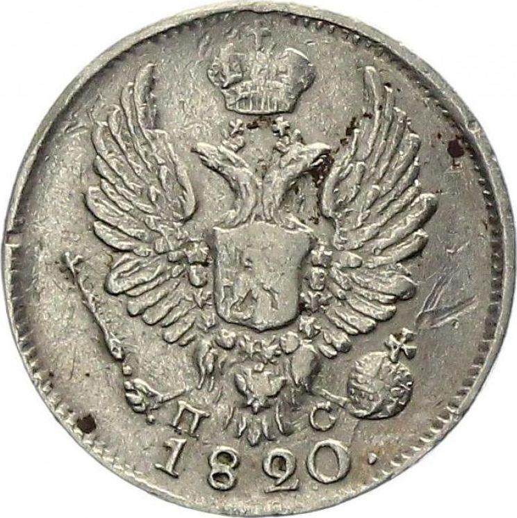 Sprawdź wartość monety rosyjskiej 5 kopiejek 1820 "Orzeł z podniesionymi skrzydłami" ze znakiem СПБ ПС. Jest to srebrna moneta z okresu Aleksandra I wybita w mennicy petersburskiej. Chcesz wiedzieć, ile jest warta moneta? Rekordowa cena należy do pozycji 484 z aukcji Rare Coins której łączna cena osiągnęła 6250 USD. Licytacja odbyła się 25 kwietnia 2015.