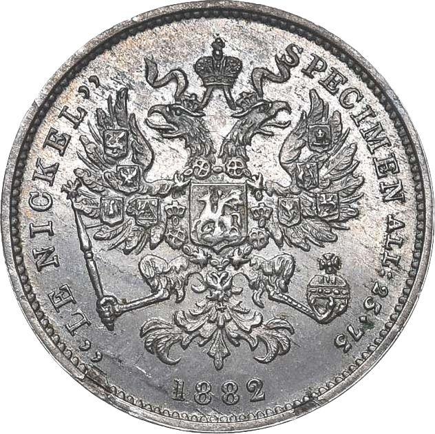 Sprawdź wartość monety rosyjskiej Próba 3 kopiejki 1882 . Jest to miedziano-niklowa moneta z okresu Aleksandra III. Chcesz wiedzieć, ile jest warta moneta? Rekordowa cena należy do pozycji 7502 z aukcji Fritz Rudolf Künker GmbH & Co. KG której łączna cena osiągnęła 8500 EUR. Licytacja odbyła się 24 czerwca 2010.