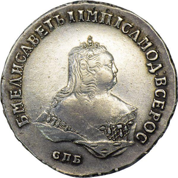 Ile kosztuje srebrna moneta połtina (1/2 rubla) 1750 СПБ "Portret piersiowy" z okresu Elżbiety Piotrowny?