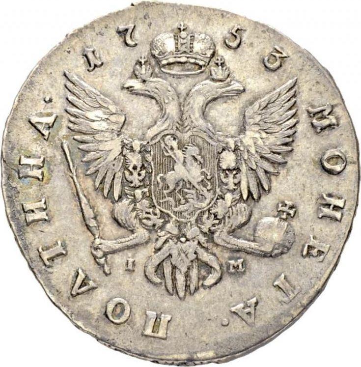 Sprawdź wartość monety rosyjskiej Połtina (1/2 rubla) 1753 "Portret piersiowy" ze znakiem СПБ IM. Jest to srebrna moneta z okresu Elżbiety Piotrowny wybita w mennicy petersburskiej. Chcesz wiedzieć, ile jest warta moneta? Rekordowa cena należy do pozycji 33021 z aukcji Heritage Auctions której łączna cena osiągnęła 4935 USD. Licytacja odbyła się 8 stycznia 2017.