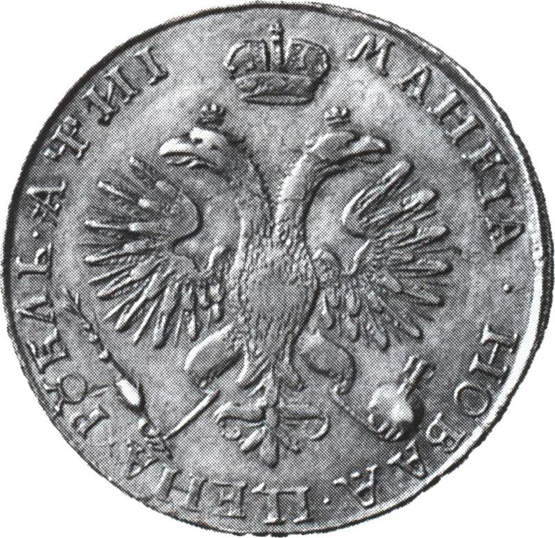 Rubel ҂АΨИI (1718) OK "Portret w zbroi". Na piersi nie ma niczego (Rosja, Piotr I Wielki)