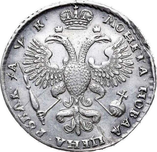 Rubel ҂АΨК (1720) "Portret w naramiennikach". Z gałęzią na piersi (Rosja, Piotr I Wielki)