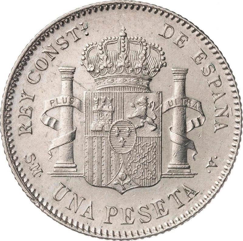 Sprawdź wartość monety hiszpańskiej 1 peseta 1900 ze znakiem SMV. Jest to srebrna moneta z okresu Alfonsa XIII. Chcesz wiedzieć, ile jest warta moneta? Rekordowa cena należy do pozycji 29181 z aukcji Heritage Auctions której łączna cena osiągnęła 282 USD. Licytacja odbyła się 15 stycznia 2013.