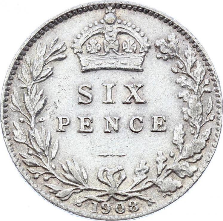 Ile kosztuje srebrna moneta 6 pensow 1908 z okresu Edwarda VII?
