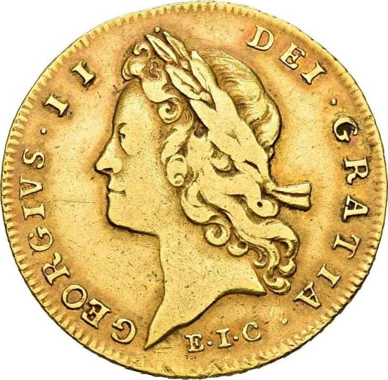 Ile kosztuje złota moneta 1 gwinea 1729 EIC "Portret w młodych latach" z okresu Jerzego II?