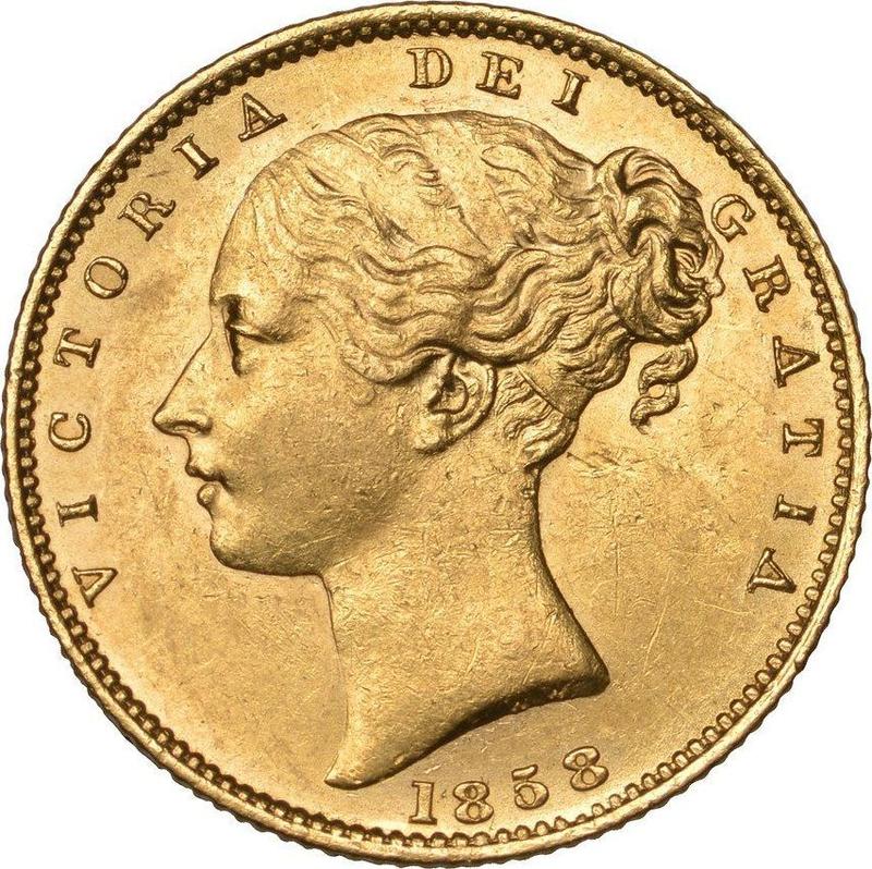 Ile kosztuje złota moneta 1 suweren 1858 WW "Herb" z okresu Wiktorii?