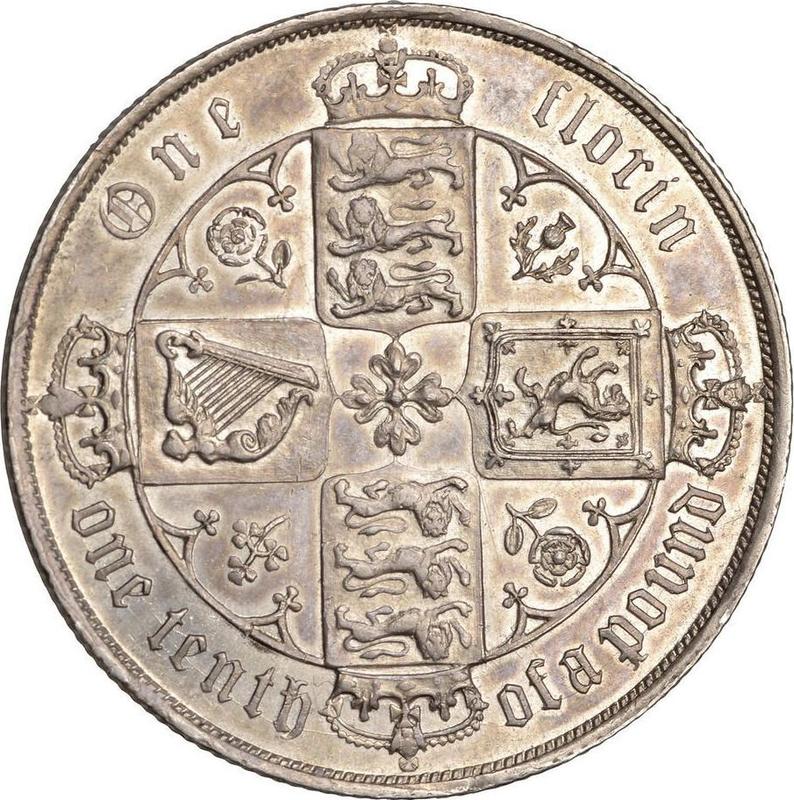 Sprawdź wartość monety brytyjskiej 1 floren 1877 "Gotycka" ze znakiem WW. Jest to srebrna moneta z okresu Wiktorii. Chcesz wiedzieć, ile jest warta moneta? Rekordowa cena należy do pozycji 23313 z aukcji Stack's Bowers której łączna cena osiągnęła 2700 USD. Licytacja odbyła się 15 listopada 2011.