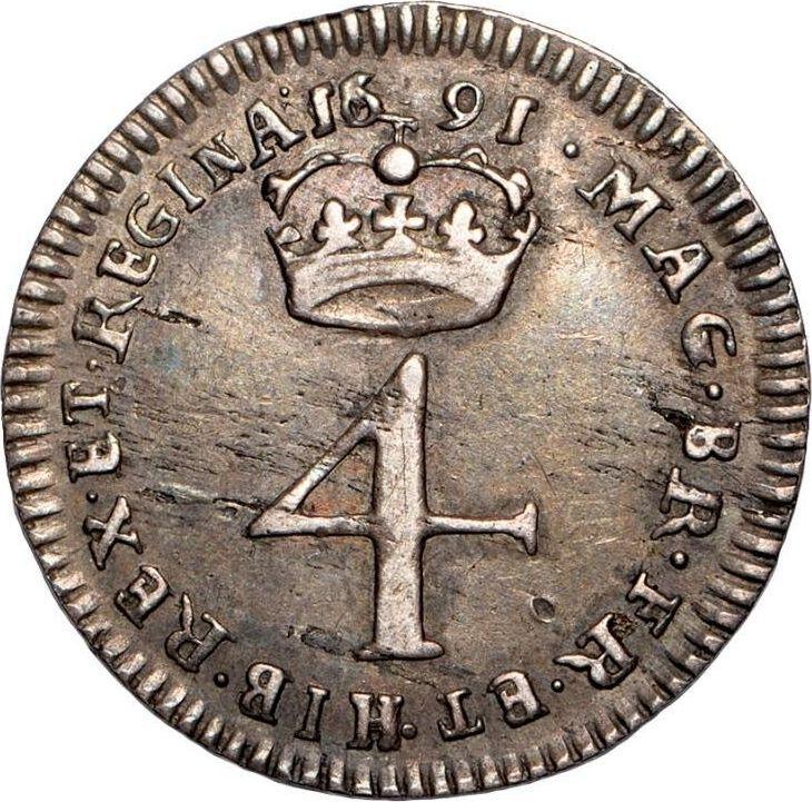 4 pensy 1691 "Pierwsze popiersia" (Wielka Brytania, Wilhelm III i Maria II)