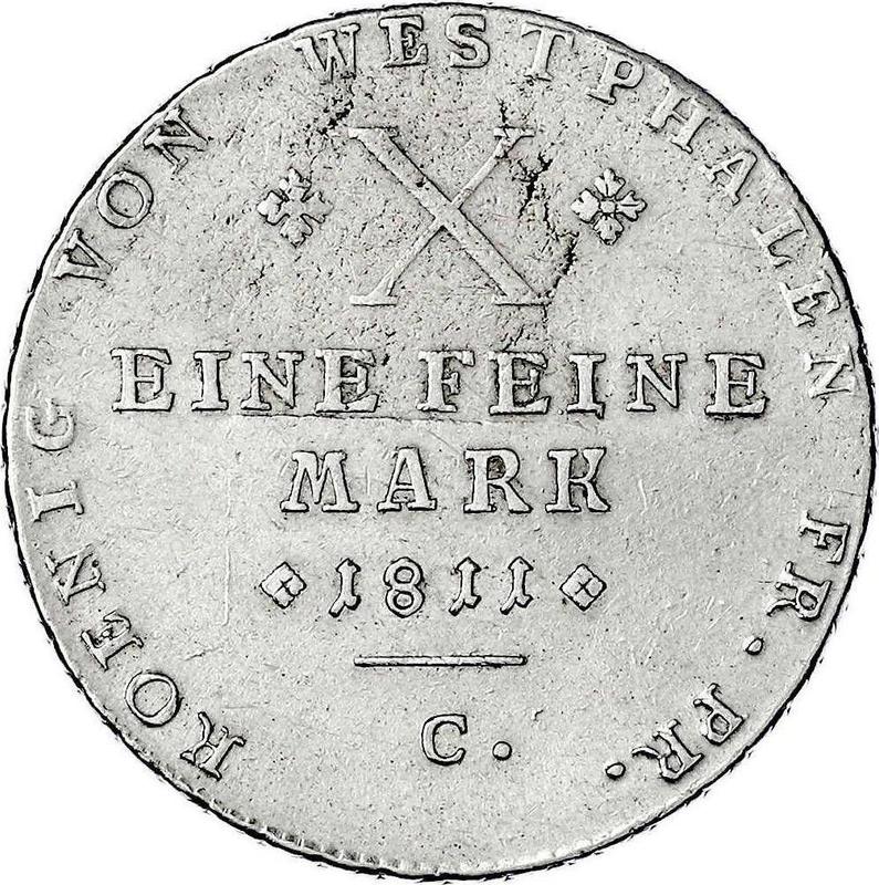 Sprawdź wartość monety Westfalski Talar 1811 "Mały wieniec laurowy" ze znakiem C. Jest to srebrna moneta z okresu Hieronima Napoléona. Chcesz wiedzieć, ile jest warta moneta? Rekordowa cena należy do pozycji 1176 z aukcji Westfälische Auktionsgesellschaft której łączna cena osiągnęła 925 EUR. Licytacja odbyła się 17 września 2012.