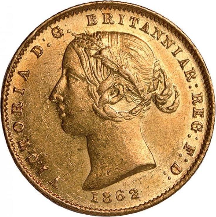 Сколько стоит золотая монета Виктории 1/2 соверена 1862 года?