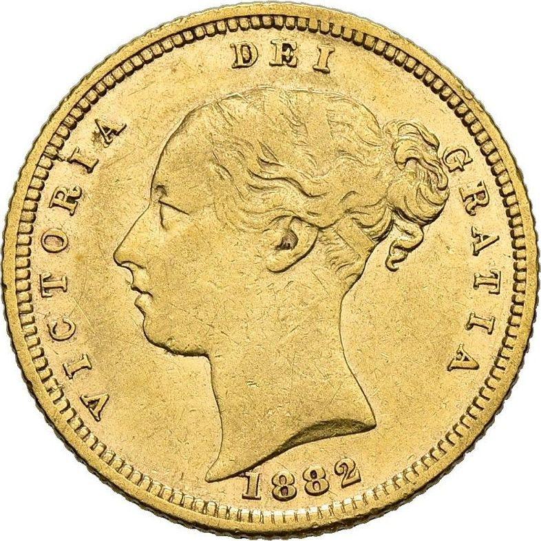 Сколько стоит золотая монета Виктории 1/2 соверена 1882 года S "Герб"?