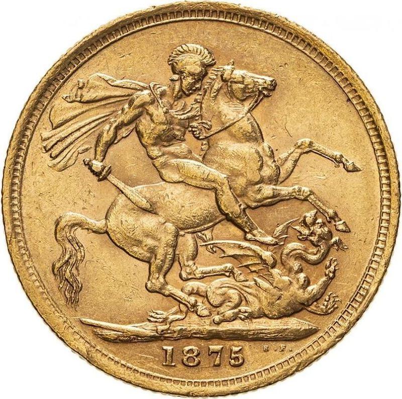 Сколько стоит золотая монета Виктории соверен 1875 года M WW "Св. Георгий"?
