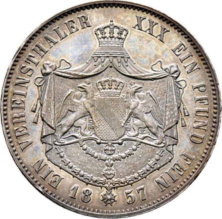 Узнайте актуальную стоимость баденской монеты талер 1857 года. Это серебряная монета периода Фридриха I отчеканена на Карлсруэ монетном дворе. Рекорд цены принадлежит лоту 2117 проданному на аукционе Gorny & Mosch Giessener Münzhandlung GmbH за 1700 EUR. Торги состоялись 9 марта 2022.