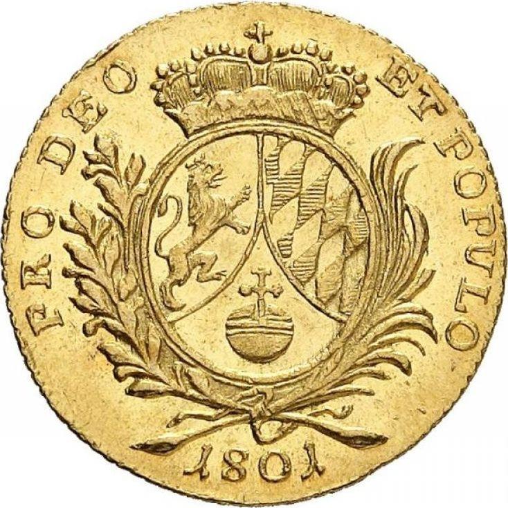 Узнайте актуальную стоимость баварской монеты дукат 1801 года. Это золотая монета периода Максимилиана I отчеканена на Мюнхен монетном дворе. Рекорд цены принадлежит лоту 3638 проданному на аукционе Fritz Rudolf Künker GmbH & Co. KG за 2800 EUR. Торги состоялись 19 июня 2013.