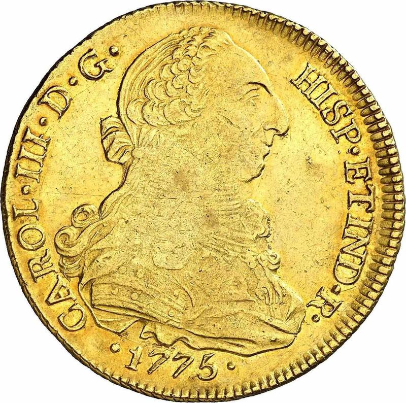 Сколько стоит золотая монета Карла III 8 эскудо 1775 года So DA?