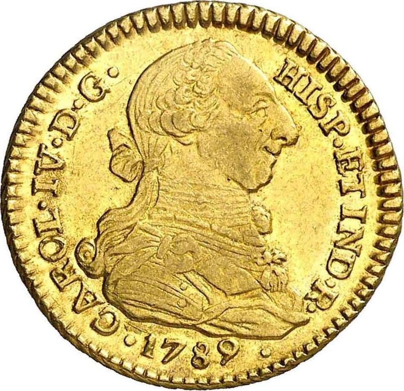Сколько стоит золотая монета Карла IV 2 эскудо 1789 года P SF?