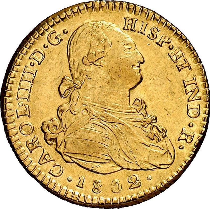 2 эскудо 1802 года P JF (Колумбия, Карл IV)
