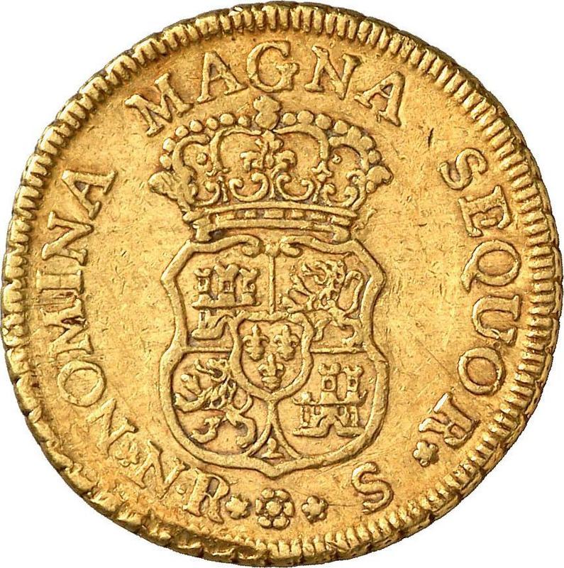2 эскудо 1756 года NR S "Тип 1756-1760" (Колумбия, Фердинанд VI)