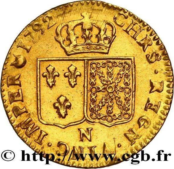 Луидор 1792 года N "Тип 1785-1792" (Франция, Людовик XVI)
