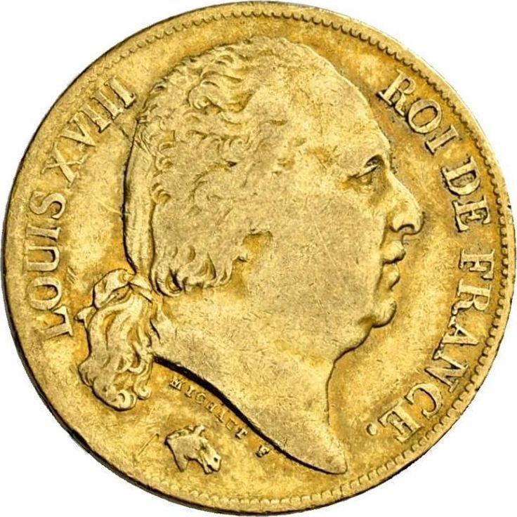 20 франков 1820 года W "Тип 1816-1824" (Франция, Людовик XVIII)