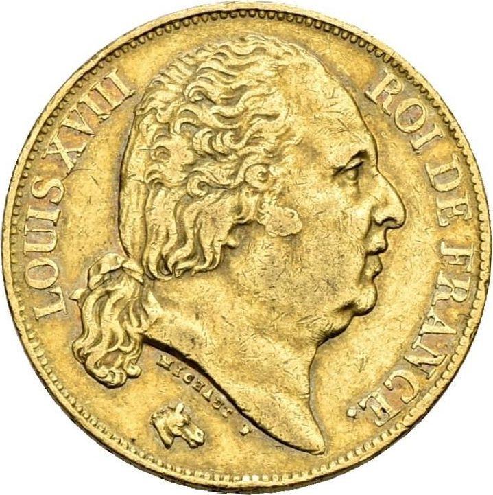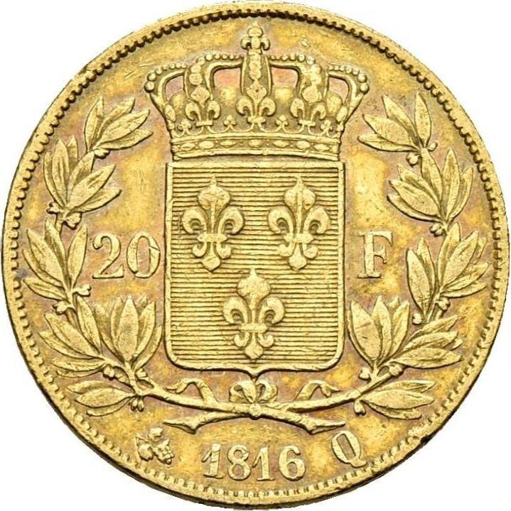 20 франков 1816 года Q "Тип 1816-1824" (Франция, Людовик XVIII)