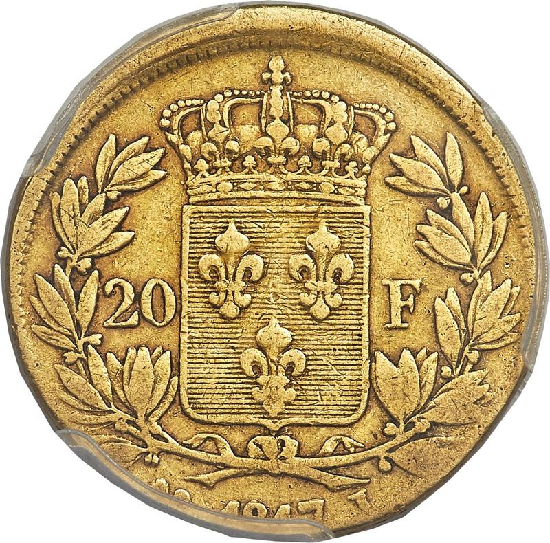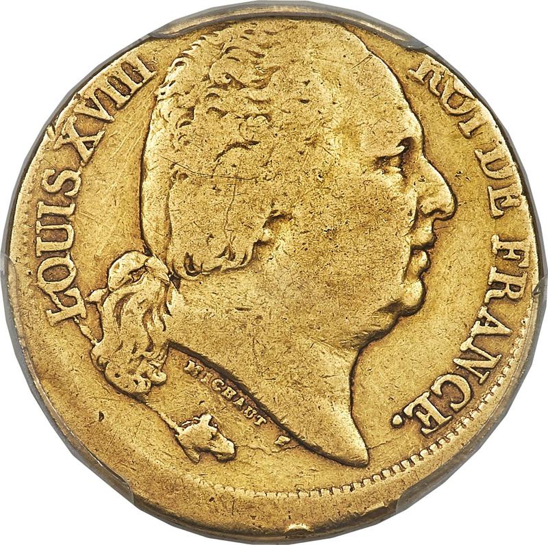 Сколько стоит золотая монета Людовика XVIII 20 франков 1816-1824 года?