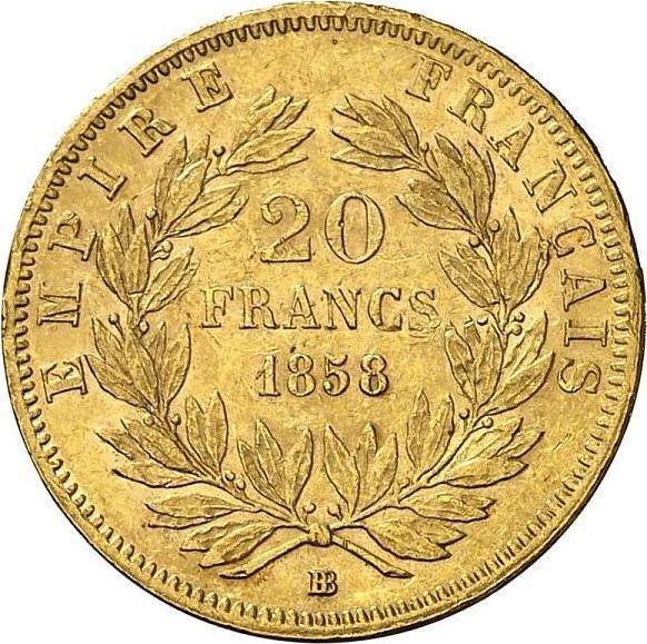 20 франков 1858 года BB "Тип 1853-1860" (Франция, Наполеон III)