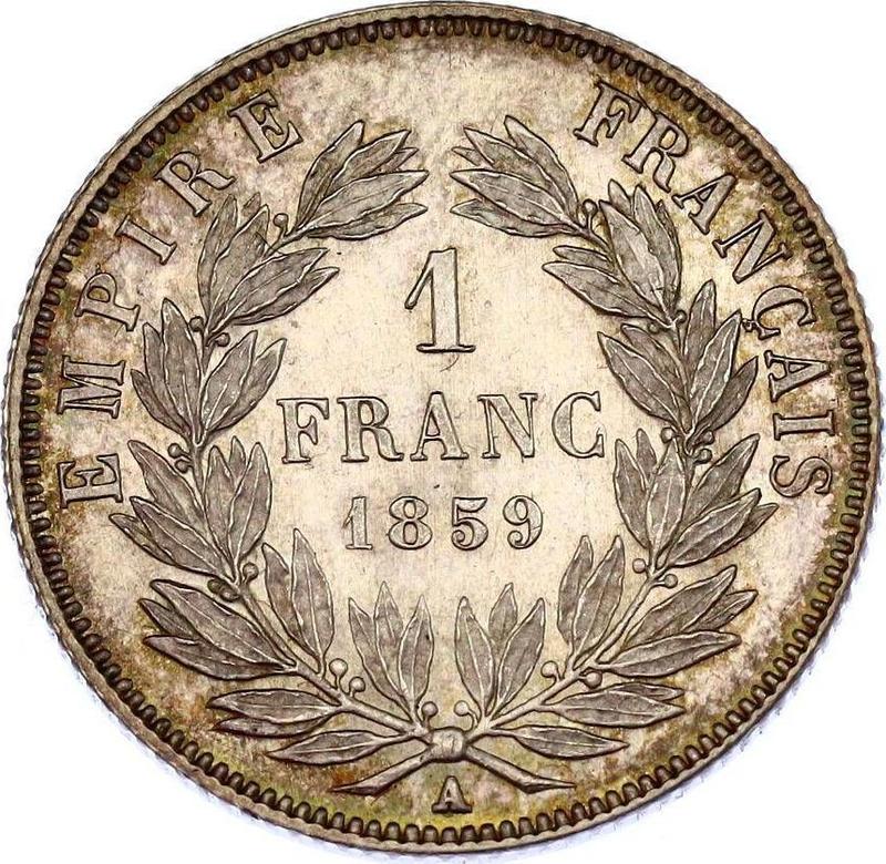 1 франк 1859 года A "Тип 1853-1863" (Франция, Наполеон III)