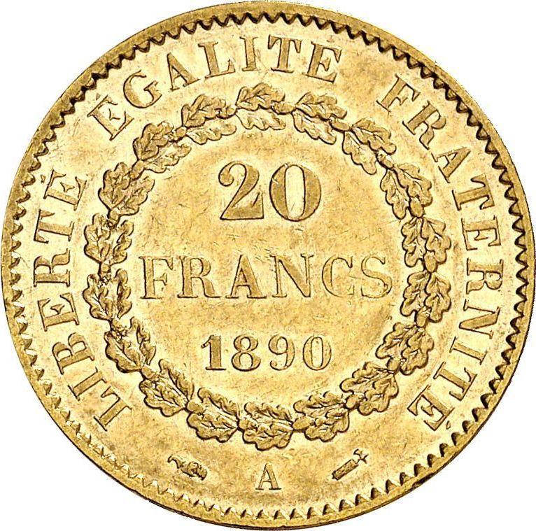 20 франков 1890 года A "Тип 1871-1898" (Франция, Третья республика)