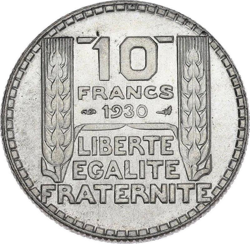 Сколько стоит серебряная монета Третьей республики 10 франков 1930 года?