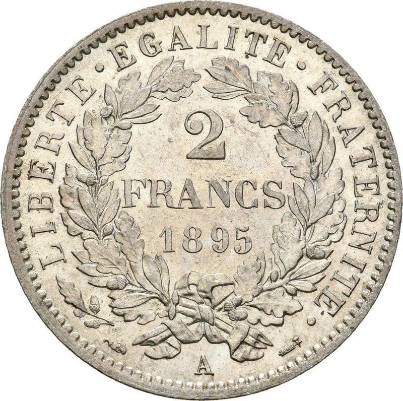 Сколько стоит серебряная монета Третьей республики 2 франка 1895 года A "С лозунгом"?