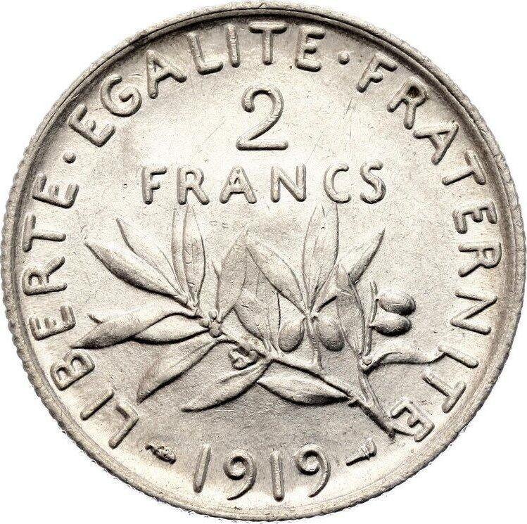 Сколько стоит серебряная монета Третьей республики 2 франка 1919 года "Сеятель"?